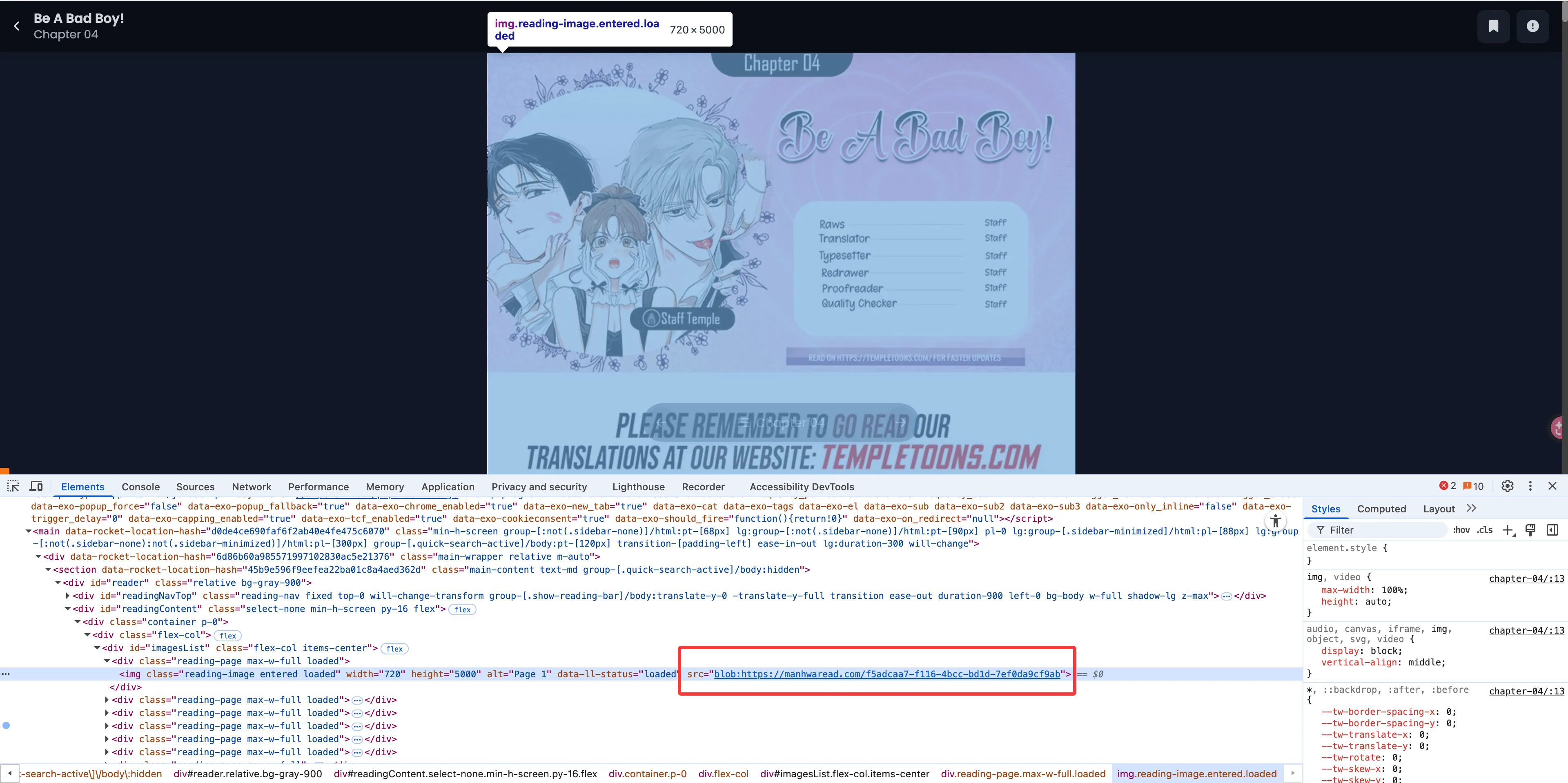 - 获取原图:拿到网页中渲染的漫画图片(根据网站实现不同,可能是