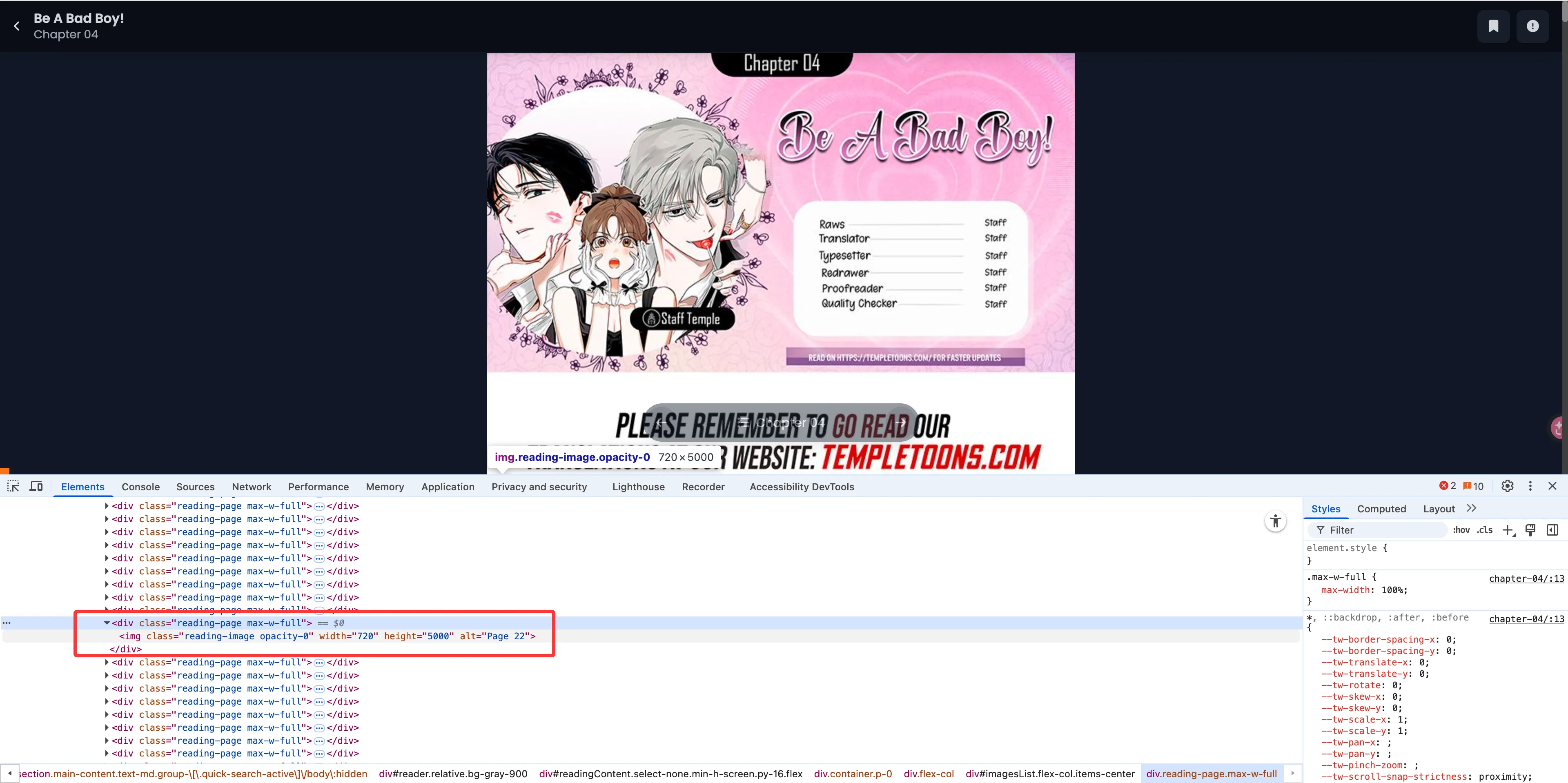 好了,至此需要提供的上下文已经完整。接下来讲讲我一般是怎么适配漫画网站的。我一般会先观察网页的 HTML 结构: